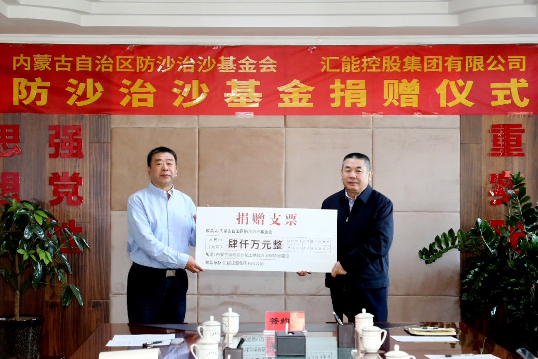 匯能控股集團(tuán)向內(nèi)蒙古自治區(qū)防沙治沙基金會(huì)捐贈(zèng)資金4000萬元